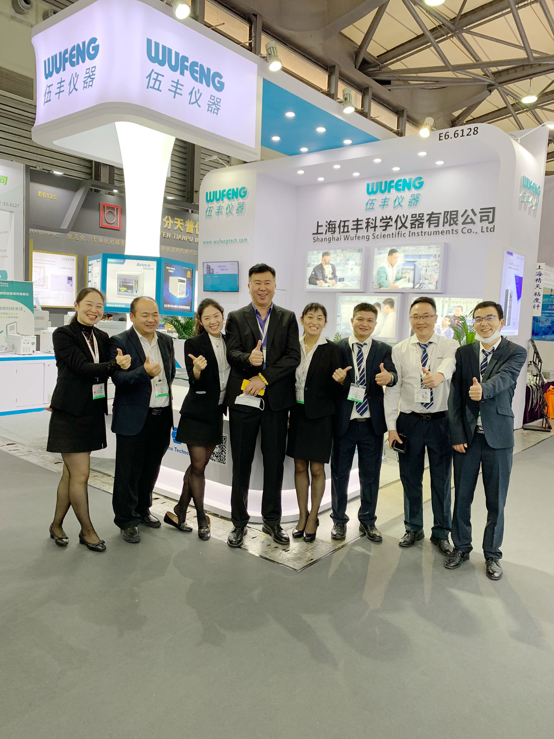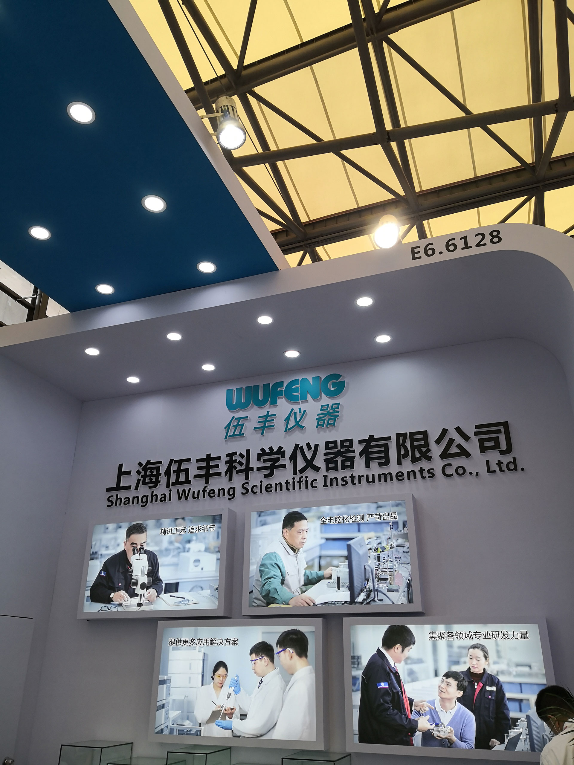 對于慕尼黑展的用心從前期籌備開始。區別于往屆的全新展臺設計,一柱擎天整體燈箱,有力的支撐頂部U型伍豐LOGO,讓參觀者更容易看到我們。