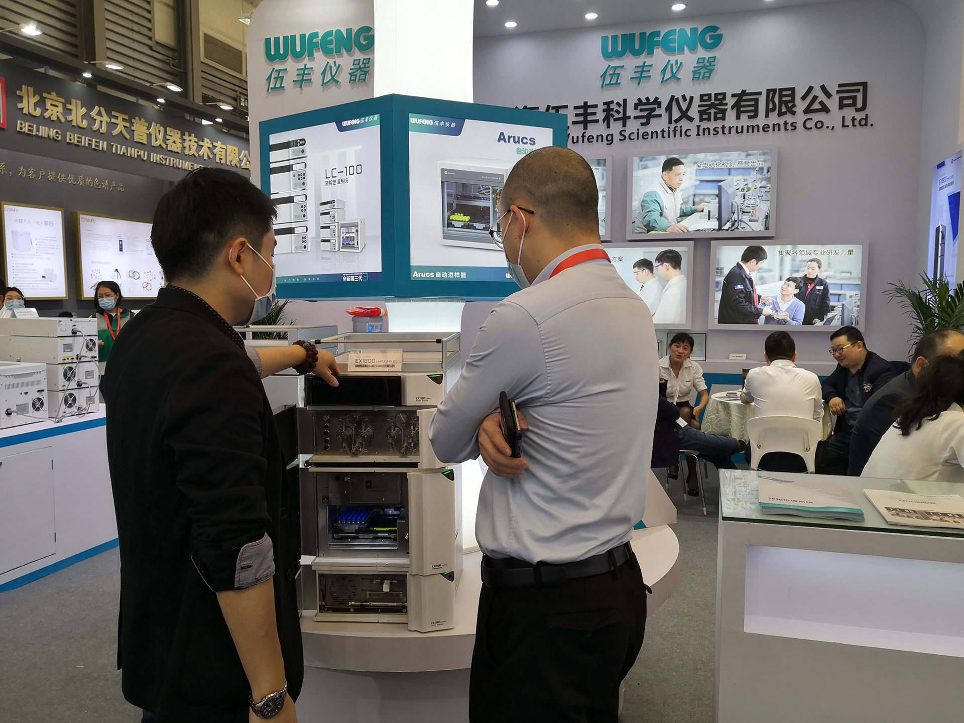 展會期間,雖然整體人流有所減少,但我們的展臺前還是絡繹不絕。就算戴著口罩也隔不住大家對伍豐產品的熱情,特別是新品EX1800和明星產品LC100前,始終有人駐足咨詢。