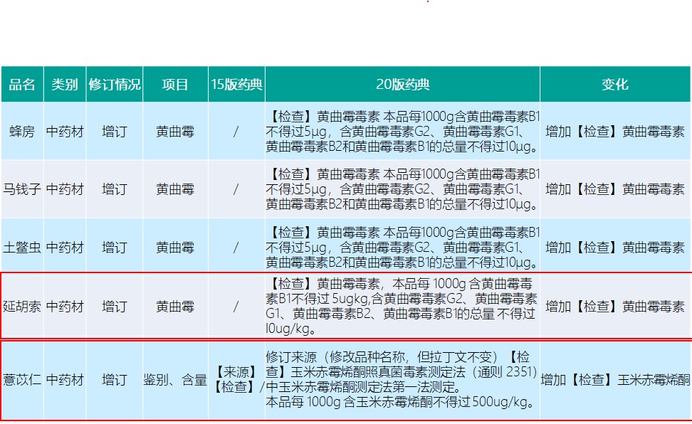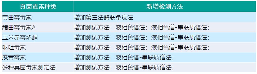 新版藥典增訂相關檢測方法約30個,新增通則及總論20個,新增指導原則15個;修訂完善檢測方法60個,修訂通則及總論12個、指導原則10個。其中包含2351真菌毒素測定法。