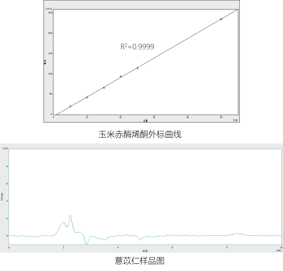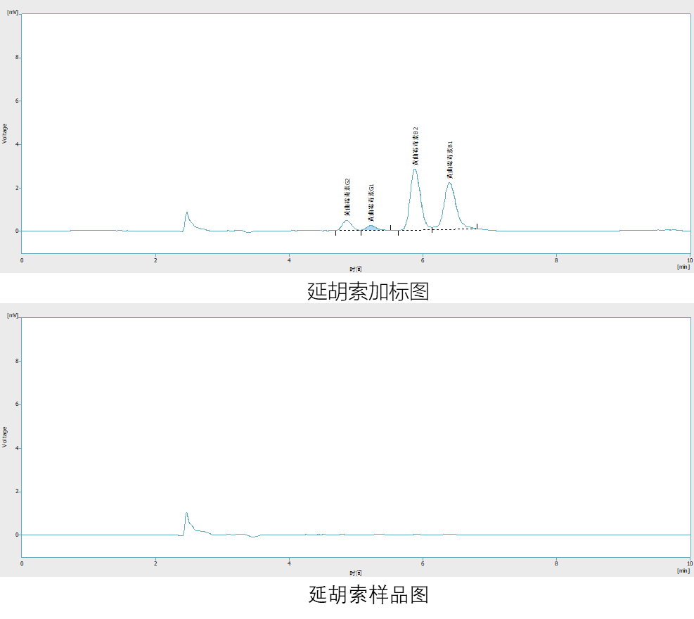針對新版《中國藥典》,伍豐使用最新的EX1800+熒光檢測器,對延胡索、薏苡仁中的黃曲霉毒素,薏苡仁中的玉米赤酶烯酮做了檢測。