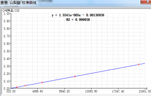 本方法對于市售雪碧中防腐劑做了相關(guān)實(shí)驗(yàn),選取相關(guān)濃度的標(biāo)準(zhǔn)品對三種添加劑做標(biāo)準(zhǔn)曲線,線性范圍良好,線性相關(guān)系數(shù)r大于0.999。根據(jù)標(biāo)準(zhǔn)曲線得出市售雪碧的苯甲酸含量,重復(fù)性好。