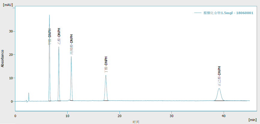 醛酮類化合物尤其是甲醛是世界上產(chǎn)量最高的十大化學(xué)品之一,研究表明醛酮類化學(xué)物對(duì)人的眼睛、皮膚和呼吸道有強(qiáng)烈的刺激作用,而且甲醛已被為是一類致癌物。隨著人民生活水提高以及化工行業(yè)的發(fā)展,對(duì)環(huán)境中醛酮類有機(jī)污染物的分析與監(jiān)測(cè)顯得尤為重要。本文根據(jù)剛剛施行的環(huán)境保護(hù)標(biāo)準(zhǔn)HJ 997-2018標(biāo)準(zhǔn),對(duì)幾種醛酮類化合物進(jìn)行分析。
