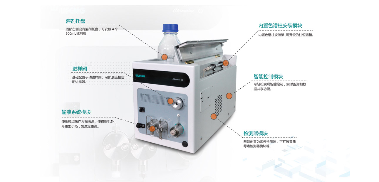 伍豐儀器集二十年液相色譜儀研發、生產經驗,針對化學化工、農業飼料、教學培訓等應用領域,開發了一款易安裝、易操作、易維護、移動性強、超高性價比一體式液相色譜儀—-LC-80。